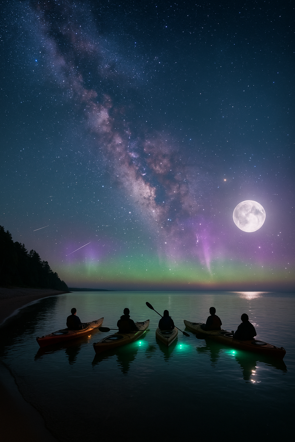 This tour stays close to shore, exploring the clear, shallow waters near the beach where our underwater lights illuminate fish and aquatic life below your kayak. As we glide across the calm surface, you will witness the quiet beauty of Lake Superior at night.